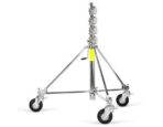 The Avenger B150P-1 Strato Safe Crank Up Stand is a beast of a stand with exceptional performance and uses rubber filled wheels (B9000P) for better movement over different types of terrain. This stand has a humorous industry nickname and it is used commonly by grips and gaffers worldwide.
