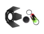 Godox Barndoor , Grid and Gel kit for AD400Pro contains a 4-way barndoor set, honeycomb grid, and one each, green, blue, red, and yellow filter. The barndoors allow you to light areas of the subject you want to and keep light from areas that you don’t want illuminated. The grid narrows the beam spread into a soft-edged circle which is ideal for uses like hair lighting. The color filters are provided for creative expression.