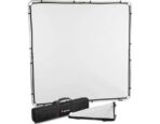 Manfrotto Skylite Rapid Standard Large Kit 2 x 2m. The kit includes the collapsible, weather-resistant frame and a clip-on 1.2 stop diffuser that’s well-suited for overhead use to tame harsh sunlight or to be employed as you would a large softbox to render your light source soft and flattering with reduced contrast. Also included is a reversible silver/white fabric that features expeditious mounting like the diffuser. The silver side of the fabric reflects strong, bright light with snappy contrast and cool rendition of color and is ideal for long throw purposes. The white side offers a neutral color rendition with slightly soft reflectance that’s great for filling in shadows and subduing contrast. To store and transport the kit Manfrotto provides a rigid, vacuum-formed case with two inner compartments to secure the components of the kit.