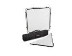 Manfrotto Skylite Rapid Standard Small Kit 1.1 x 1.1m The kit includes the collapsible, weather-resistant frame and a clip-on 1.2 stop diffuser that’s well-suited for overhead use to tame harsh sunlight or to be employed as you would a large softbox to render your light source soft and flattering with reduced contrast. Also included is a reversible silver/white fabric that features expeditious mounting like the diffuser. The silver side of the fabric reflects strong, bright light with snappy contrast and cool rendition of color and is ideal for long throw purposes. The white side offers a neutral color rendition with slightly soft reflectance that’s great for filling in shadows and subduing contrast. To store and transport the kit Lastolite provides a rigid, vacuum-formed case with two inner compartments to secure the components of the kit.