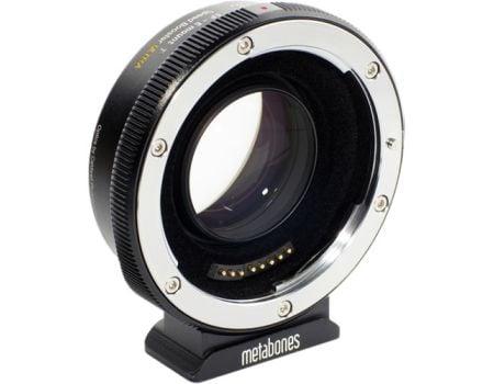 Metabones Canon EF to E MountSpeed Booster ULTRA II 0.71X Utilizing advanced optics, this adapter will increase the apparent angle of view of your full-frame lens by 0.71x, effectively combating the crop factor of an APS-C camera. This also increases the apparent sharpness of your image while also increasing the maximum aperture by 1 stop, making your full-frame lens look as if it were mounted on a full-frame camera.