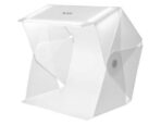 ORANGEMONKIE Foldio3 25″ Mini Studio is a 25 x 25 x 22″ white plastic box-like structure that folds down to a thickness of 2.5″ and is easily carried by its convenient handle. Ideal for small products and ecommerce, the Foldio3 illuminates its subjects with three daylight-balanced LED strips that incorporate dimmers that allow you to dial in the appropriate light intensity or create a ratio between the strips by dimming down one of them. The Foldio3 includes black and white backdrops to vary your images and comes with a multi-voltage AC power supply. An app is available for iOS that facilitates chroma key, brightness, color temperature control, editing, and web sharing.