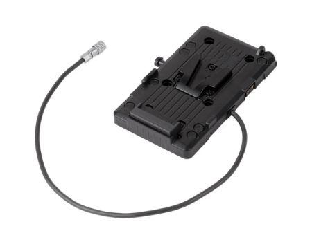 Wooden Camera V-Mount Battery Plate for Blackmagic Pocket Cinema Camera 4K/6K utilizes an IDX V-mount battery plate and a Blackmagic Pocket Cinema Camera 4K/6K connector. The 16″ cable exits the right side of the plate, allowing for easy insertion into the camera. Its design allows minimal cable excess while still being able to reach additional modules when necessary. It also features two D-Tap ports for accessory power.